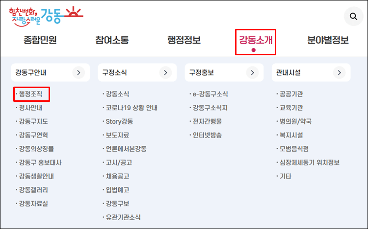 2. 강동구청 조직도 바로가기