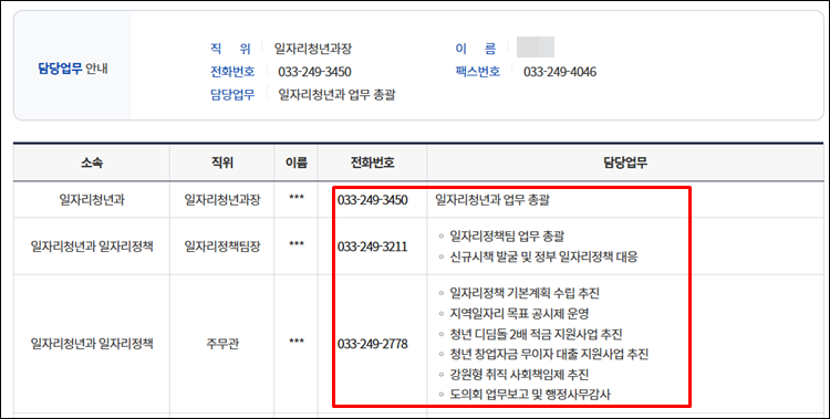3. 강원도청 일자리 직원 전화번호 바로가기