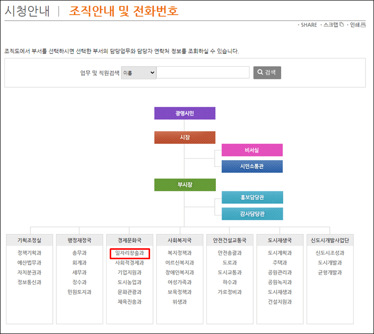 광명시 구인구직을 하는 분들은 일자리창출과의 담당자를 확인해 보세요.