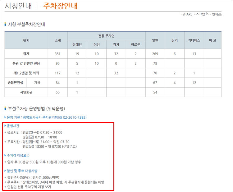 3. 광명시청 주차장 운영시간 및 요금 알아보기