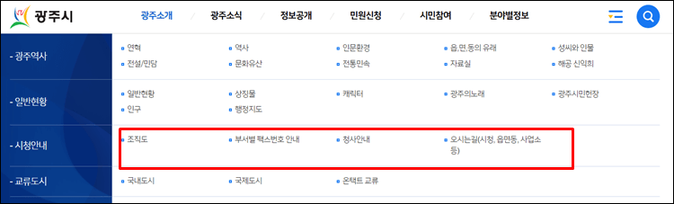 광주시청 홈페이지 조직도 및 전화번호 바로가기