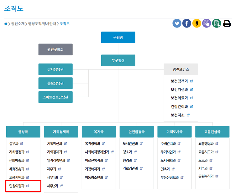 오늘은 광진구청 홈페이지에서 조직도와 전화번호를 살펴보았습니다.