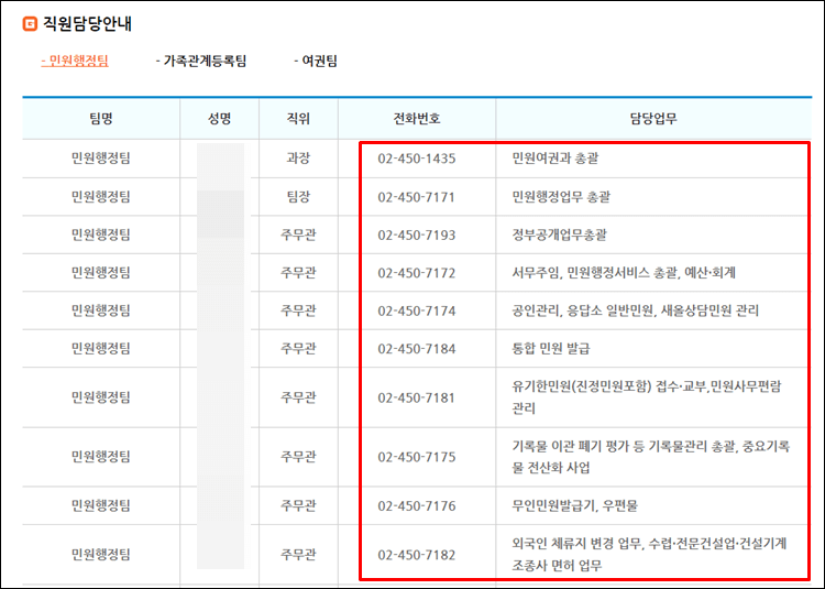 조직도와 직원 전화번호를 사전에 파악하여 전화로 민원을 해결할 수도 있습니다.