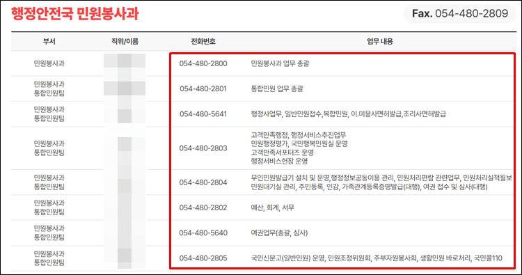 3. 구미시청 직원 이름, 전화번호 바로보기