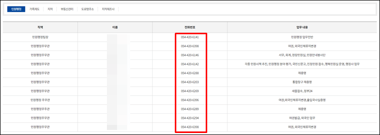 아래와 같이 직책, 이름, 전화번호 조회가 가능합니다.