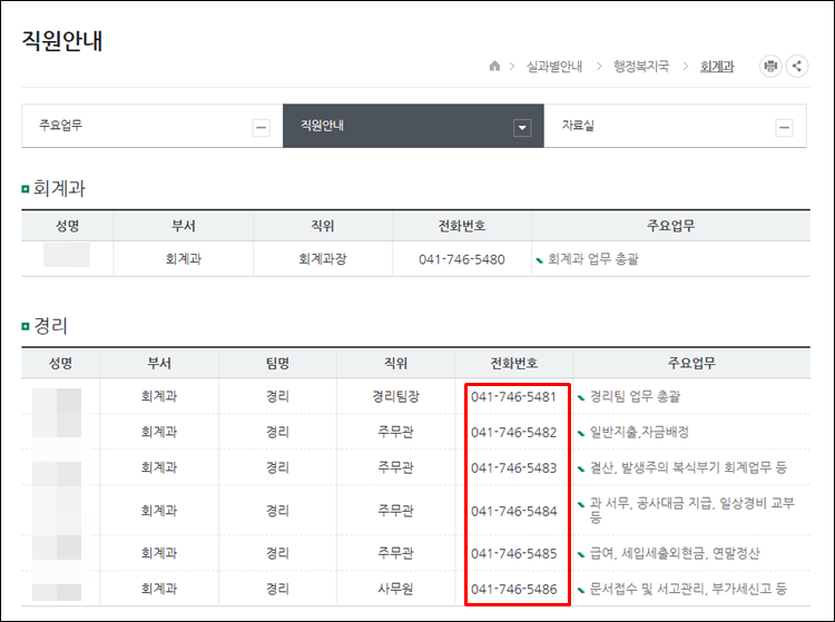 3. 논산시청 직원 전화번호 조회하기