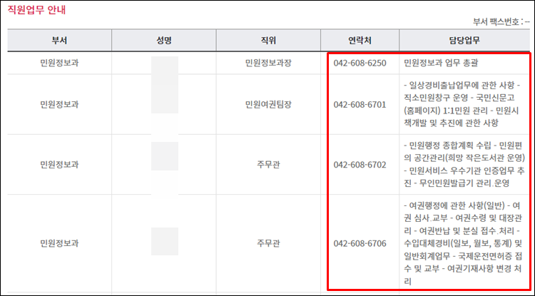 대덕구청 홈페이지 직원이름, 전화번호 조회방법