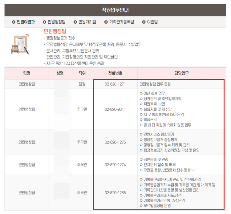 3. 동작구청 직원 전화번호 바로가기