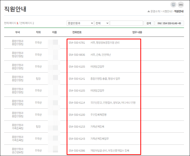 문경시청 홈페이지를 방문하시면 민원실 직원 이름과 전화번호 조회가 가능합니다.