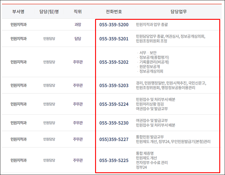 그 중에서도 부서와 전화번호를 먼저 확인해보세요.
