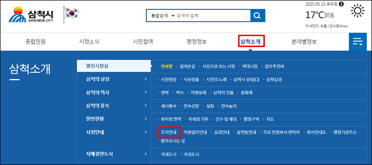 2. 삼척시청 조직도 알아보기