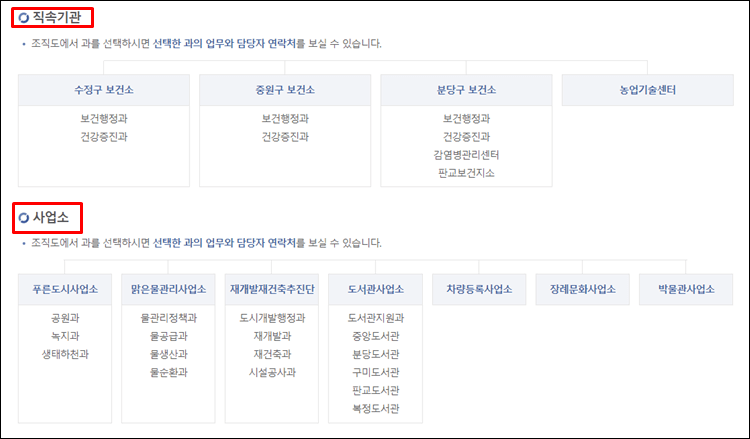 성남시청의 조직도 뿐만아니라 보건소, 농업기술센터, 사업소등도 확인할 수 있습니다.