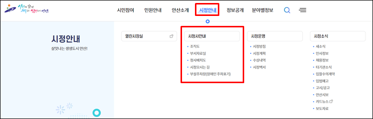 안산시청 홈페이지로 이도이 되셨다면, 시정안내메뉴를 눌러보세요.