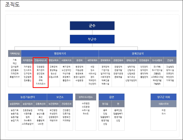양구군청 조직도를 살펴보면 아래와 같이 부서를 알아보실 수 있습니다.