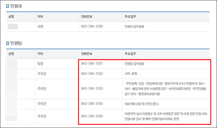 3. 영동군청 민원과 전화번호 조회하기
