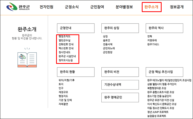2. 완주군청 조직도 알아보기