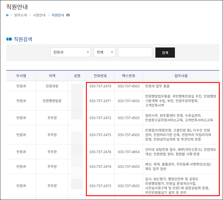 3. 원주시청 직원 전화번호 알아보기