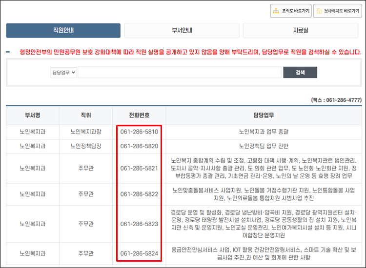 전남도청 직원 부서, 전화번호 안내