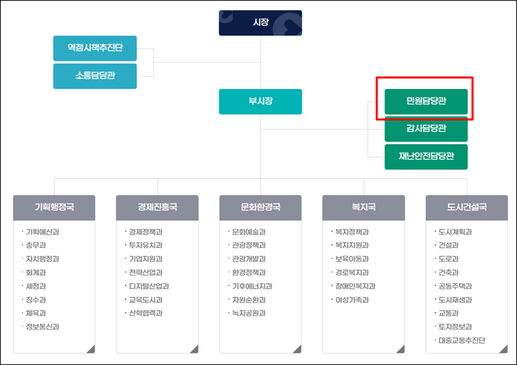 또한, 민원업무를 보시고 싶으시다면 민원담당관을 클릭해보세요.