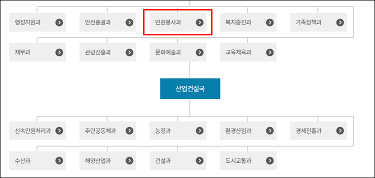 군청안내의 조직도탭을 눌러보시기 바랍니다.